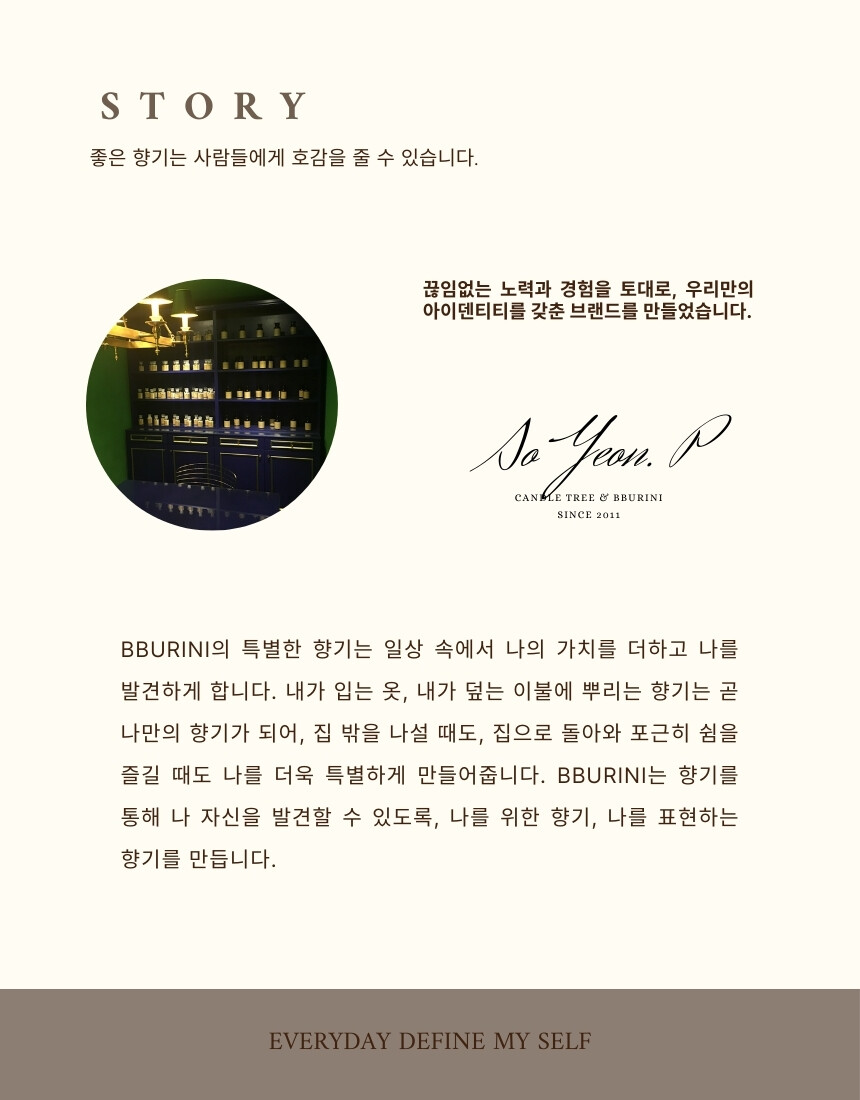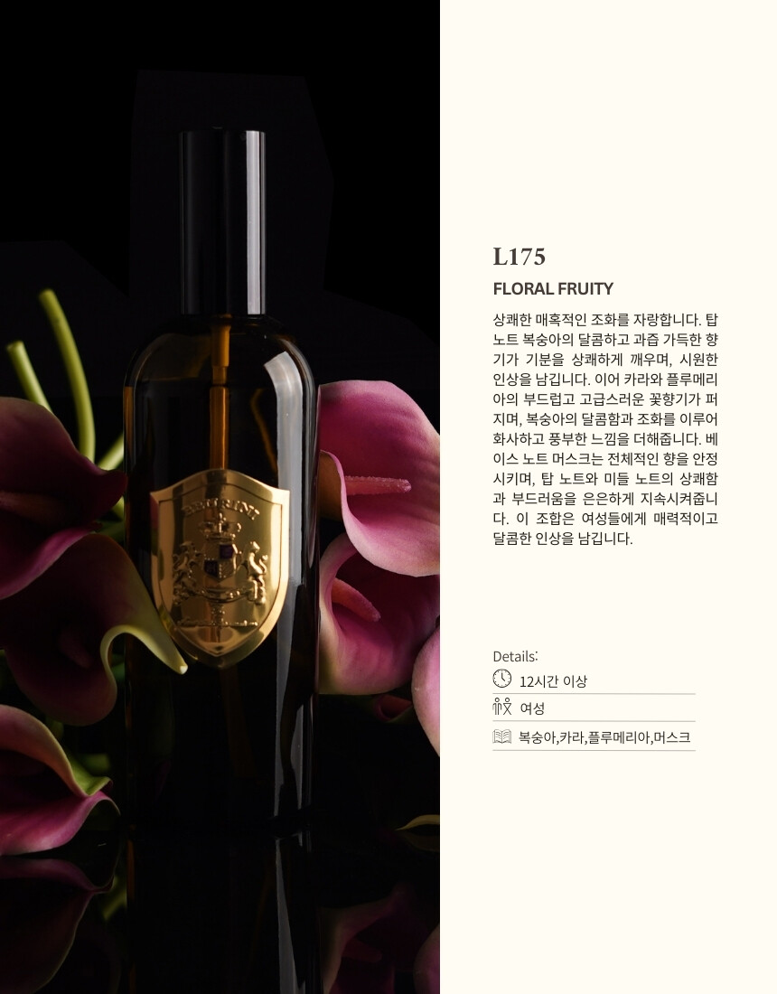 상쾌함과 부드러움, 강렬하면서도 성숙한 조화로운 느낌을 선사합니다. 샤프란 특유의 향긋하고 워밍한 스파이시와 싱그러운 과일의 상쾌함으로 시작하여, 달콤한 꽃향기, 강렬하고 풍성한 우디 노트와 화이트 머스크 향으로 상쾌하고 부드럽게 이어지는 향기입니다.